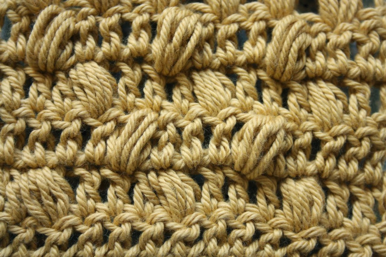Puffs made with 2, 3, 4 and 5 treble (USA – double) stitches.