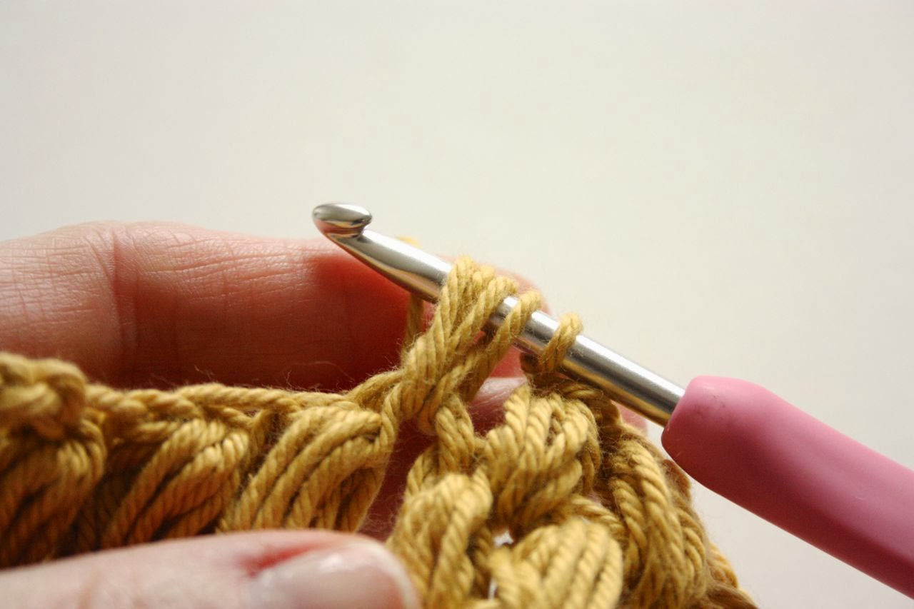 2. Insert the hook into the stitch (or chain space), wrap the yarn around the hook.