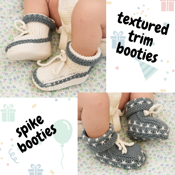 Baby booties pattern to make 2 styles of vintage knit baby booties.