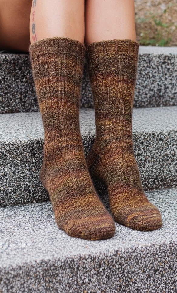 Lia Socks are worked cuff down with a heel flap and gusset.