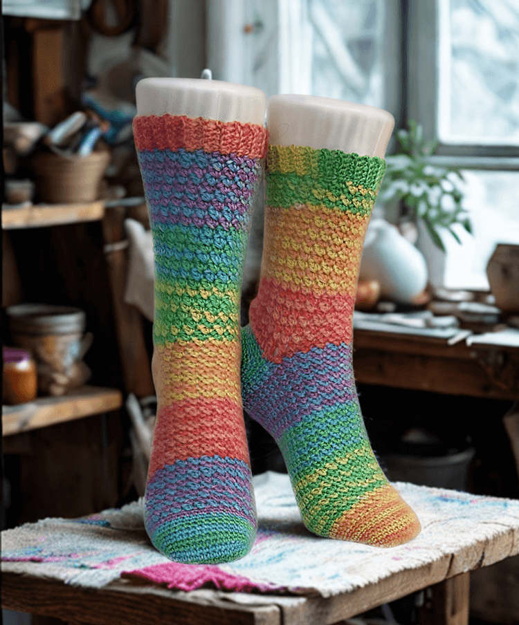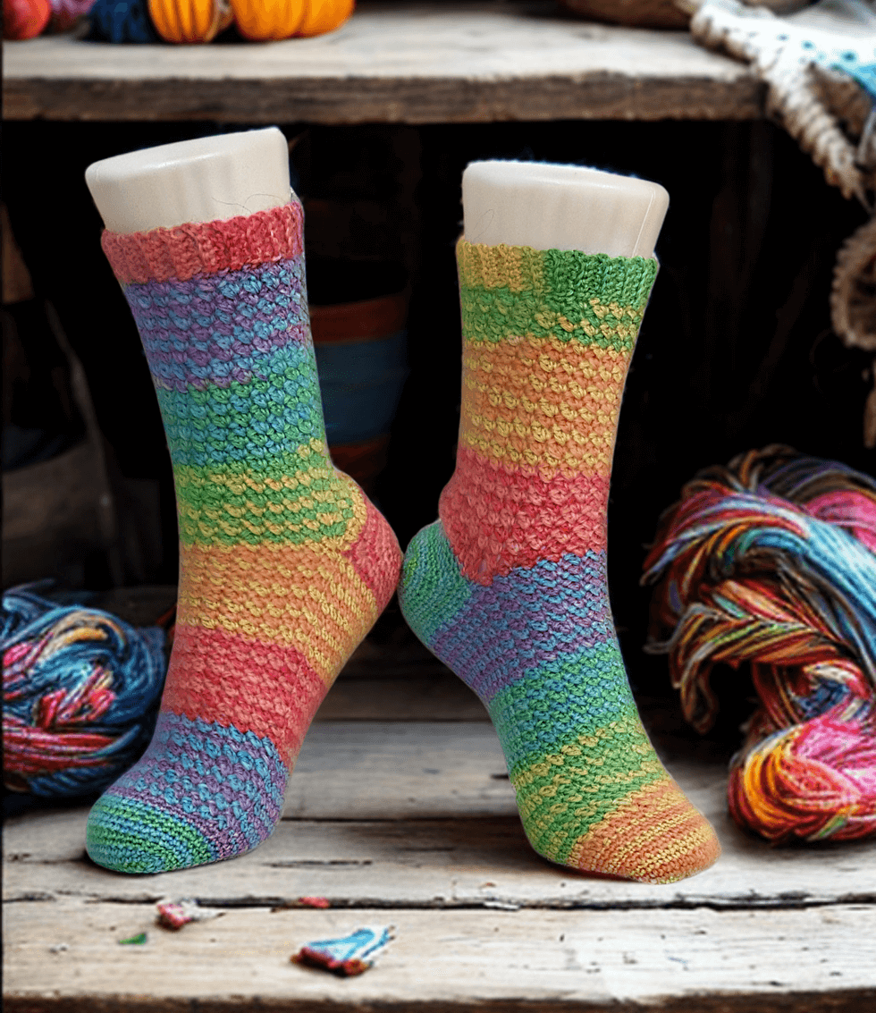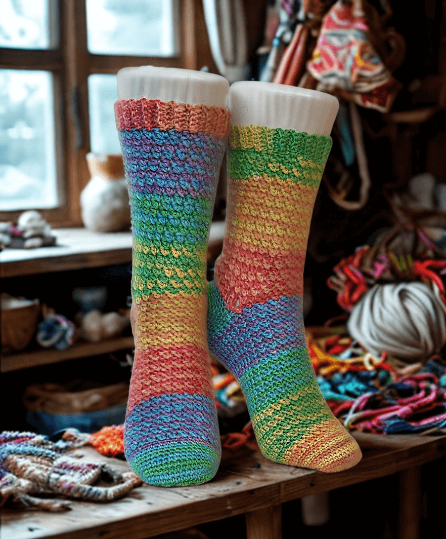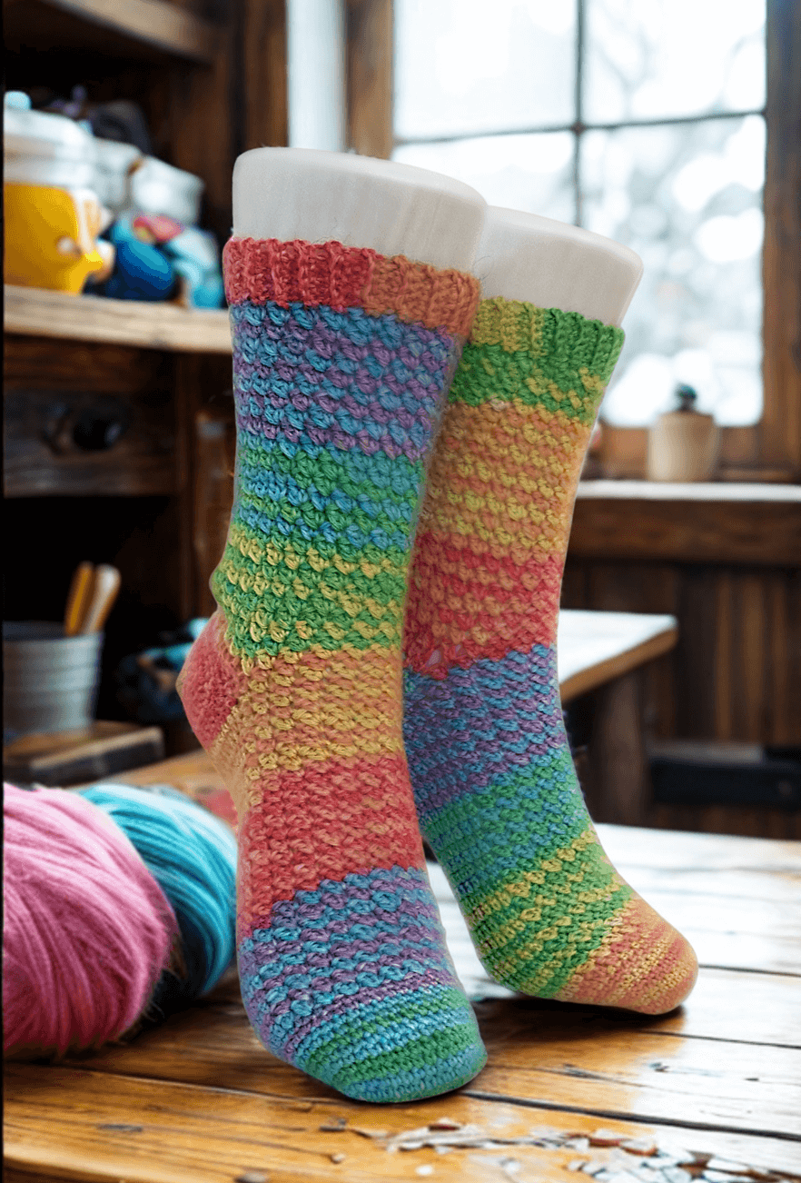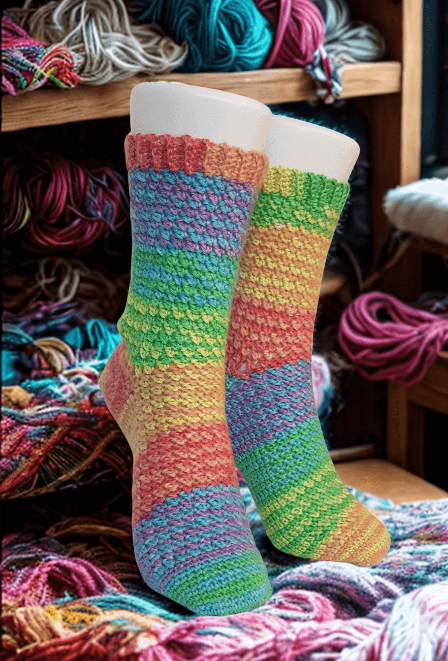 Any sock yarn should work with this pattern. Match pattern gauge by doing a gauge swatch first. You may need to adjust hook size to achieve the stated gauge.