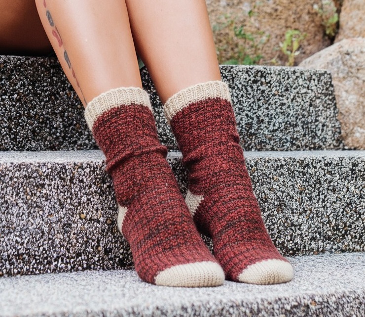 To fit women’s shoe size small (6-7), medium (7-8), large, (8-9), extra large (9-10), length customisable in pattern.