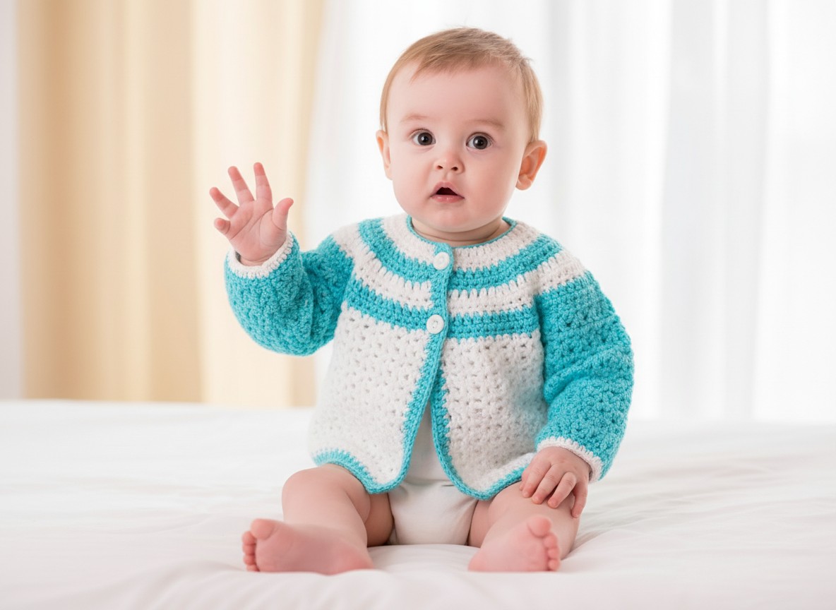 Easy crochet organic cotton round neck baby cardigan kit