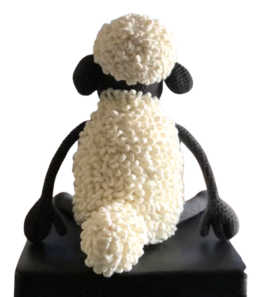 Materials: YC Poppy 25g, 5 x balls white and 2 x balls black, a 2.5mm crochet hook, 2 x 10mm black shank buttons or black embroidery yarn, fiber fill, & yarn needles.